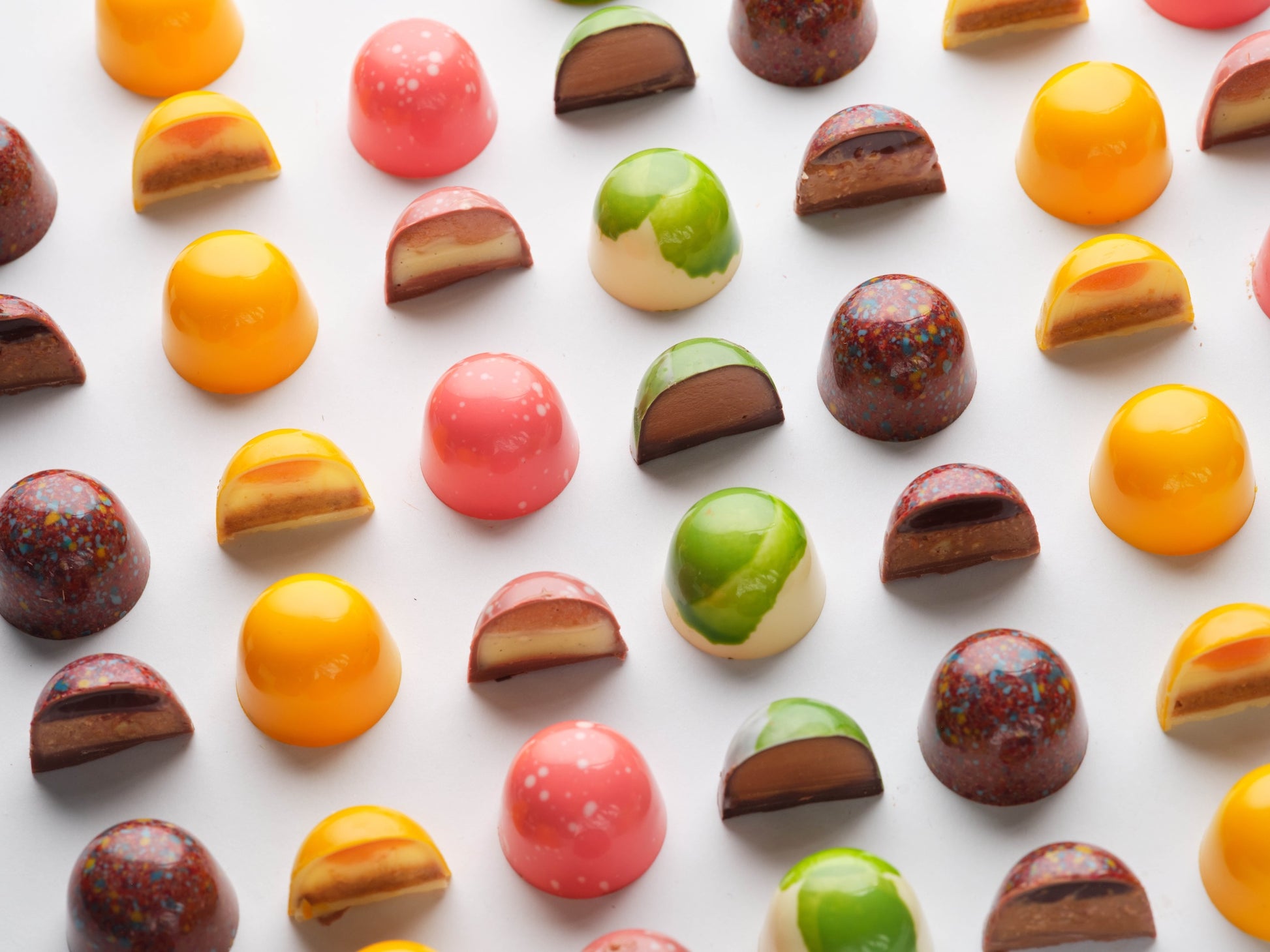 - Rhubarb & Madagascan Vanilla- A red rhubarb gelée is paired with a silky vanilla bean ganache.